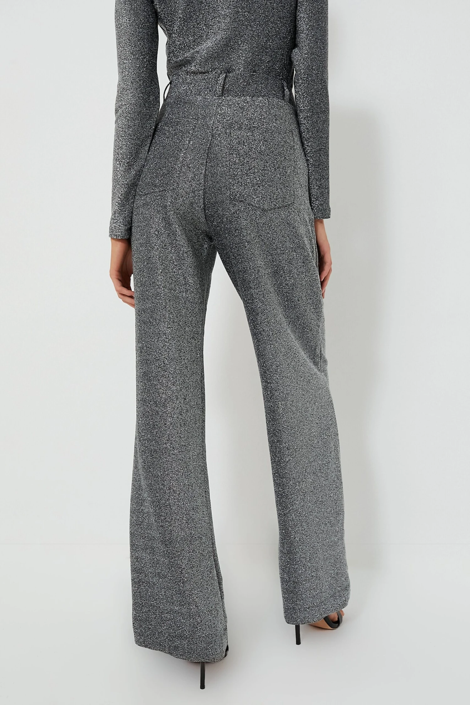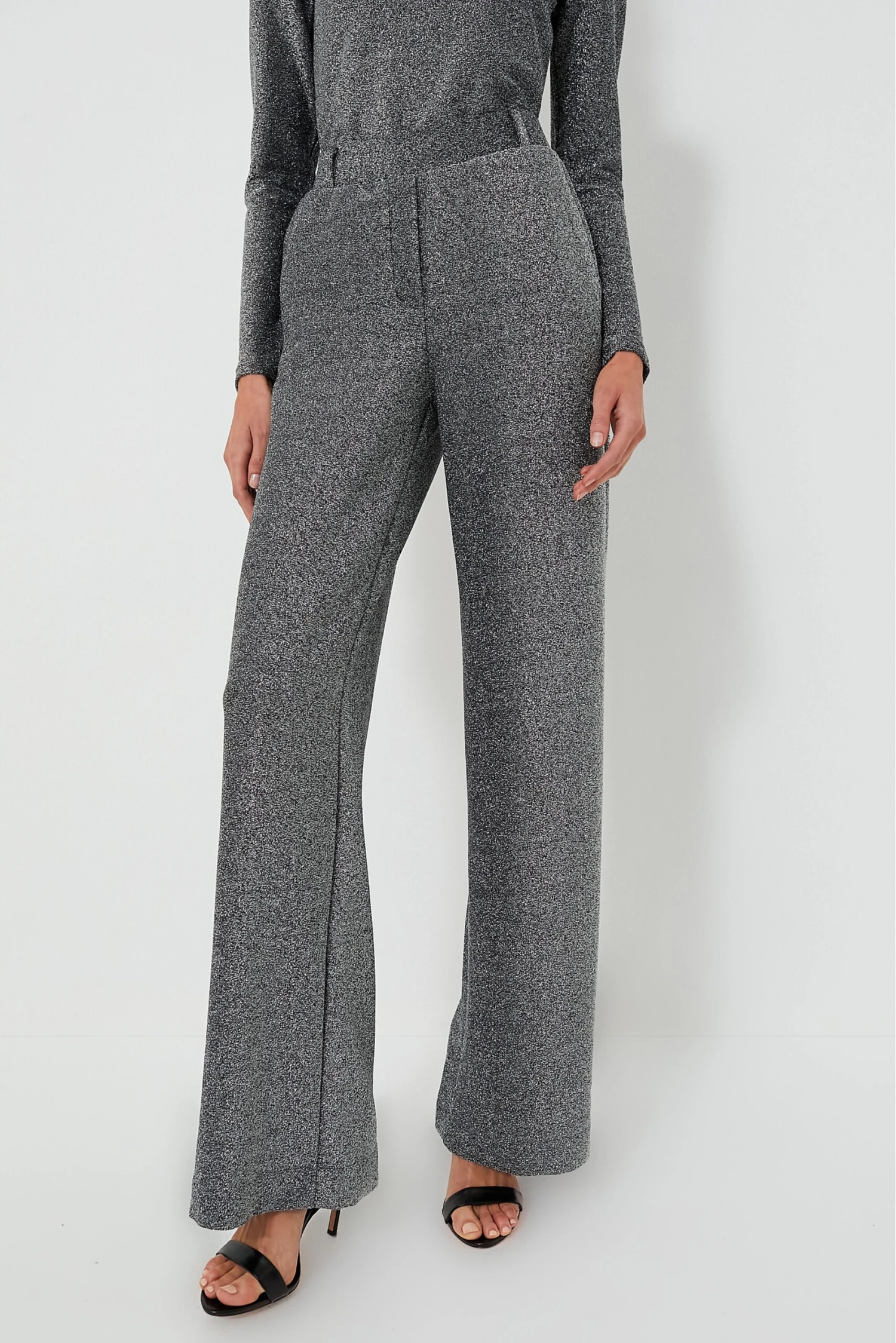 Shine bright in the Shimmer Gray Jya Pant by Baum Und Pferdgarten! These have a classic straight-leg trouser silhouette that is elevated with stretchy, glittery fabric. Featuring an elasticized waistband, pockets at the sides and back, and belt loops at the waist, these are the perfect bottoms to wear to your next event or to dress up your office wardrobe.