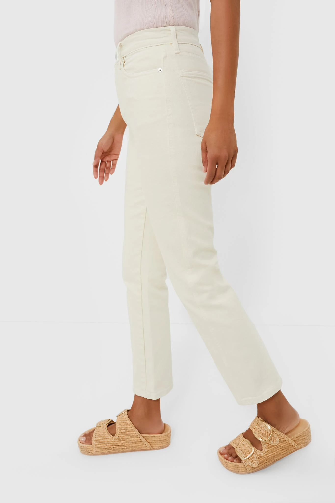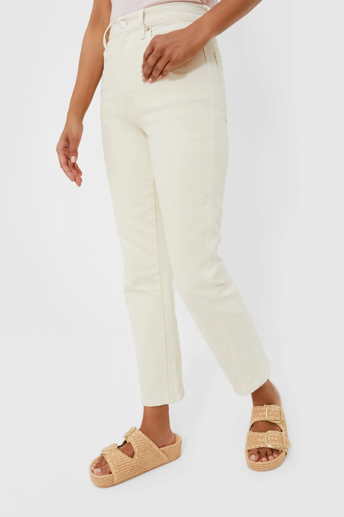Get ready for a wardrobe revamp with the help of the Ecru Camilla Jean. A super high-waisted jean with a flattering forward side seam with a slight kick flare, this slim fit style is cut from a superior cotton blend with a touch of stretch ensures all day comfort. The creamy white hue provides versatility, dress them down with a basic tee and sandals for a coffee date, or dress them up for dinner and drinks with a silky blouse and wedges!