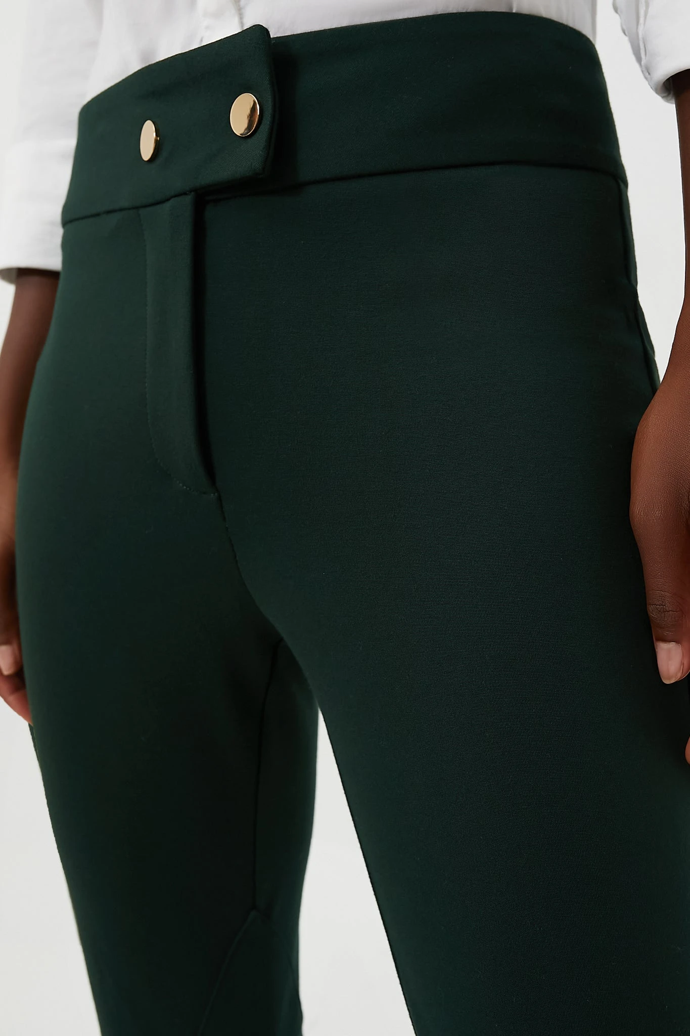 Inspired by equestrian heritage, the Green Ponte Bridwell Riding Pants combine traditional details with modern function to create the perfect, year round pants. Featuring brushed gold buttons atop the waistband closure, these bottoms pair effortlessly with everything from chunky sweaters to crisp button downs for a classic and cool look.