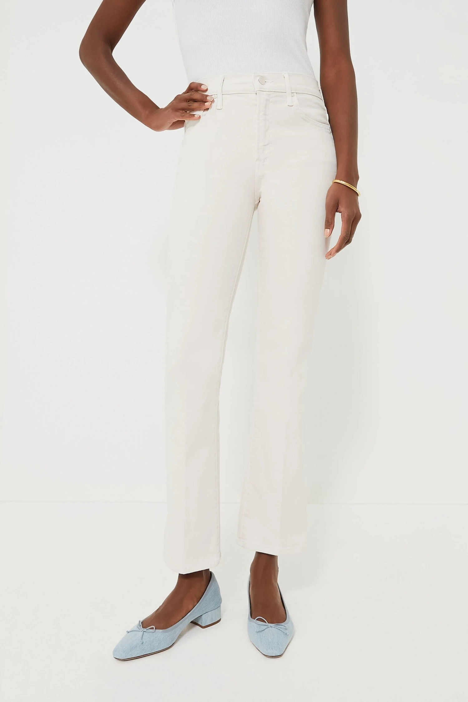 The Crystal Grey The Insider Flood is an easy-to-style straight leg silhouette with the slightest flare at the ankles, making them perfect for wearing with heels, loafers, boots, and pretty much anything else. Made from a high quality semi-rigid denim, these feature a light khaki cream with clean hem that brings effortless styling. We love how these look with a basic tee, a blouse, and your go-to gold jewelry for an effortlessly chic look that is cool without trying.