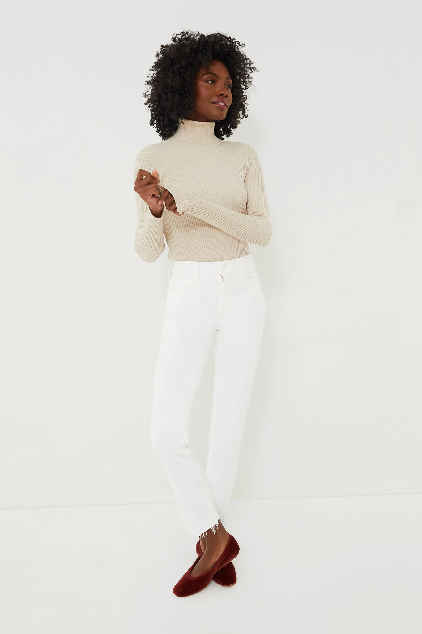 Not your average white denim! The Fairest Of Them All Dazzler features a straight leg with a frayed ankle length inseam perfect for warm-weather wear. A best-seller for a reason, we are wearing these crisp and bright mid-rise jeans with button downs, boho blouses, and tees alike. Style with sandals for a backyard barbecue or with wedges and statement earrings for an easy yet chic vacation look.