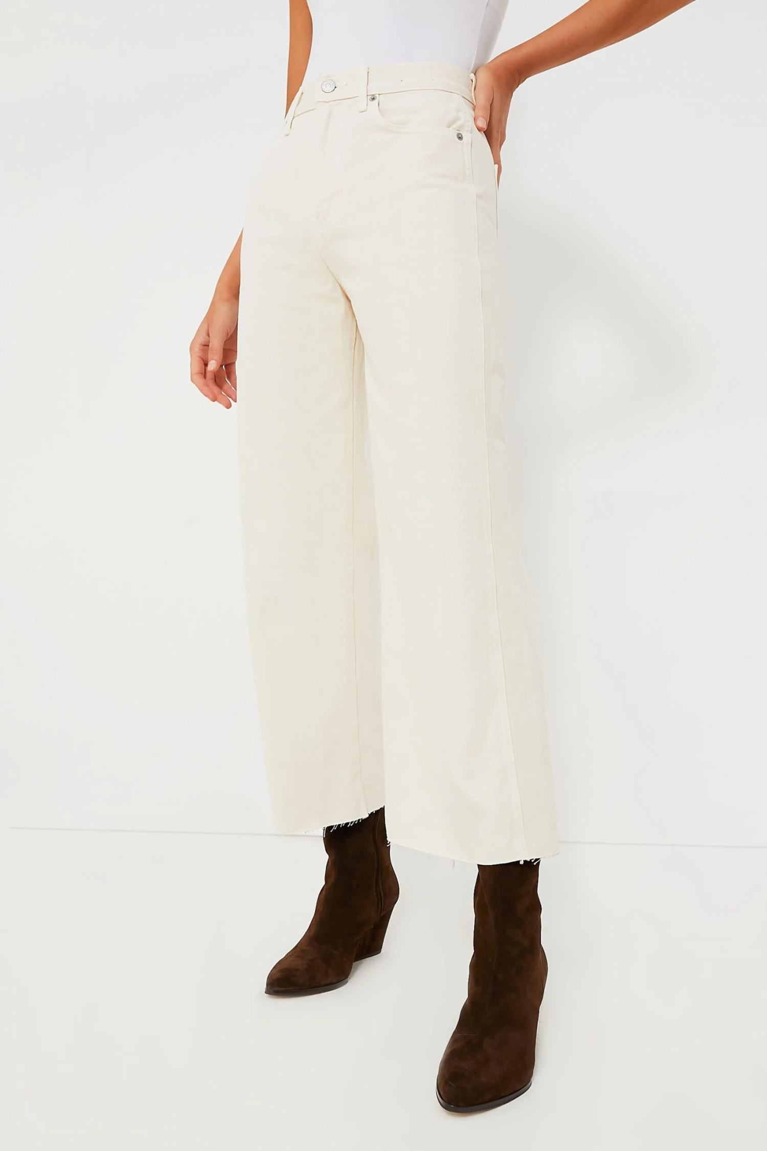 You can never go wrong with a classic like the Ecru Taylor Cropped Pant. Cut from premium non-stretch Japanese denim, these bottoms feature a high-rise, wide-leg style and a raw hem for a fashion-forward finish. Pair this wear-forever jean with everything from tonal silk blouses to plain white tees for a chic and easy look.