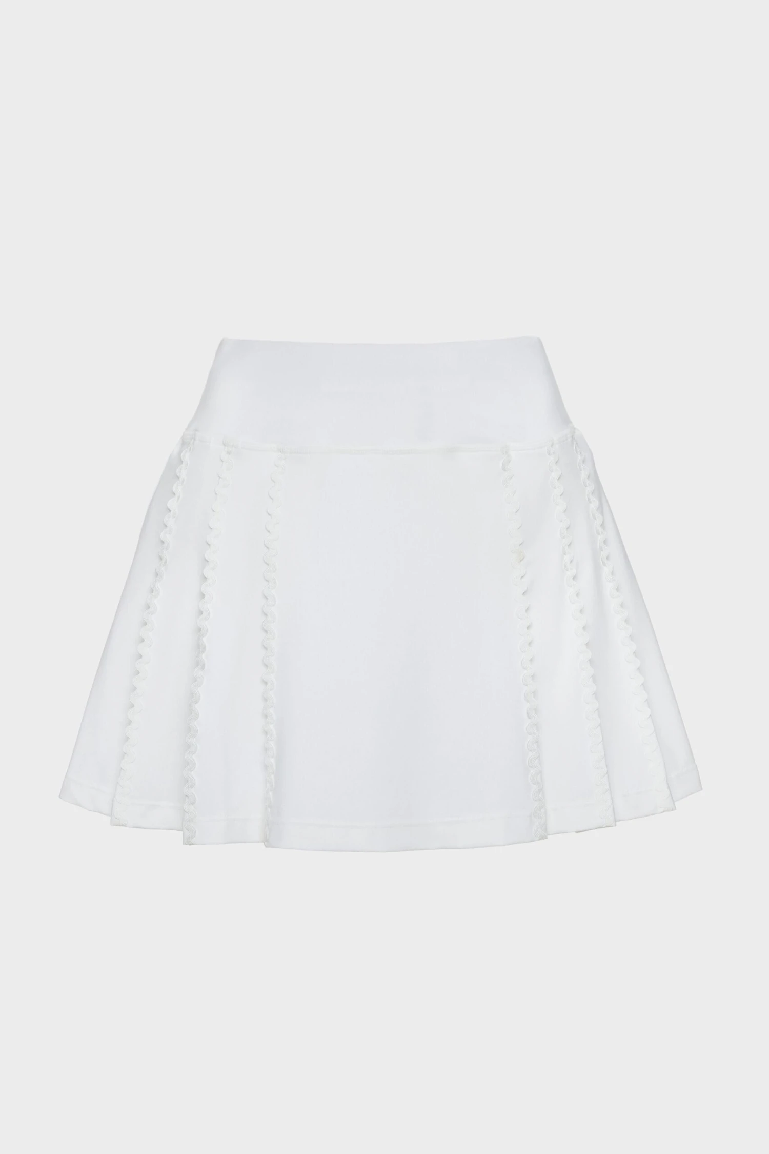 A classic all-American style, the White Ric Rac 14 Inch Lydia Tennis Skirt is an adorable mini that you can wear on and off the courts. An elastic waistband and compression undershorts allow for comfort and ease so that you can perform your best, and the front pleating with ric rac trim adds a feminine element so that you can look cute while winning!